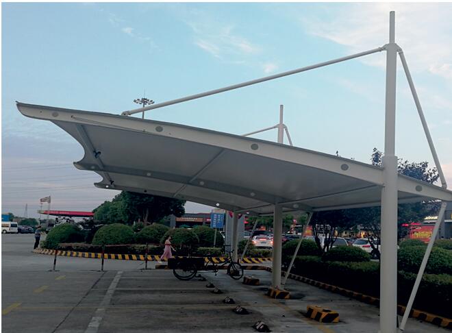 膜结构车棚公司使用膜材的支撑结构和柔性膜材使修建物外型愈加多元化,新颖漂亮,一起表现结构之美,表明且颜色丰厚,有较高的反射性及较低的光吸收低而且热传导性较低,这极大程度上阻碍太阳能进入室内,半透明的设计确保了恰当的光线散射。膜结构停车棚的重要构造为金属龙骨和膜顶部结构,金属龙骨经由过程与金属支架与地面进行连接,接地面的面积巨细是膜结构停车棚坚固的症结,咱们平日能够经由过程增长不锈钢柱的办法来增长停车棚的坚固度,增长办法以下,在原金属支柱邻近5-10公分处,打上15-20公分的地基,装上直径不小于5CM的不锈钢管,与棚顶部的受力龙骨支架进行焊接,这样是最有用的加固办法。
